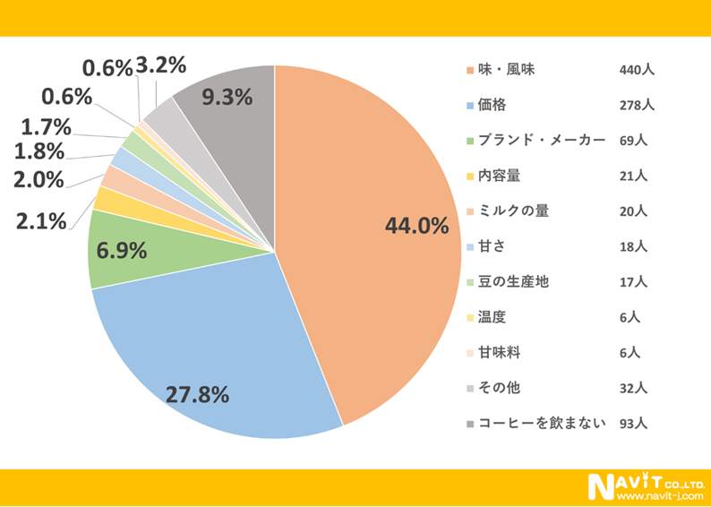 コーヒーを選ぶ際、最も重要視していることは何ですか?(対象者:1000人)