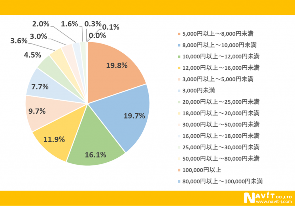 月々の電気代は、「5,000円以上~8,000円未満」が最多