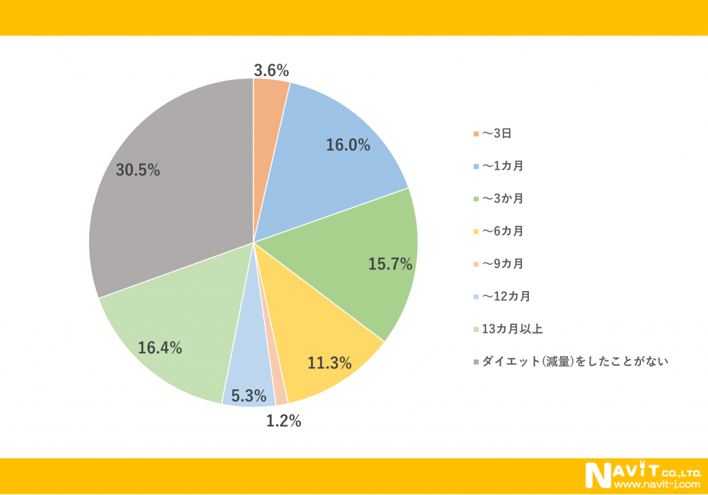 ダイエット(減量)に取り組んだ期間は「13カ月以上」が最多