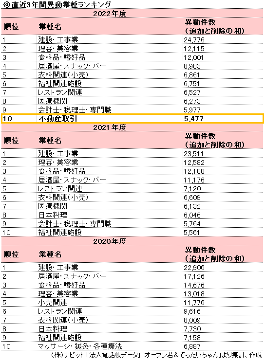 2020年・2021年にはトップ10に入らなかった「不動産取引」が10位にランクインしています。