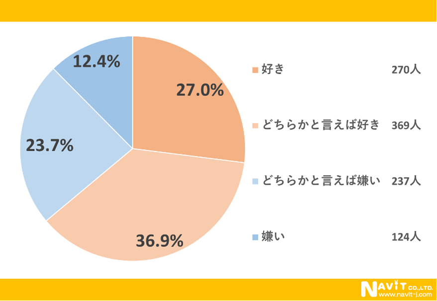 豆乳が「どちらかと言えば好き」という方が1番多く36.9%になっています。「好き」という方が次に多く27.0%となっています。半数以上の方が豆乳に好意的なようです。