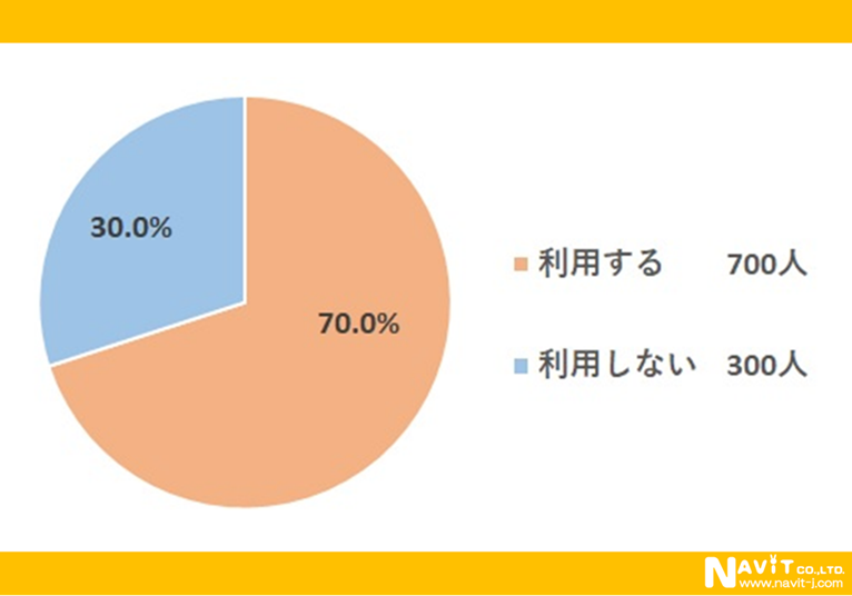 アンケート対象者の7割が、コーヒーチェーン店を「利用する」と回答しています。