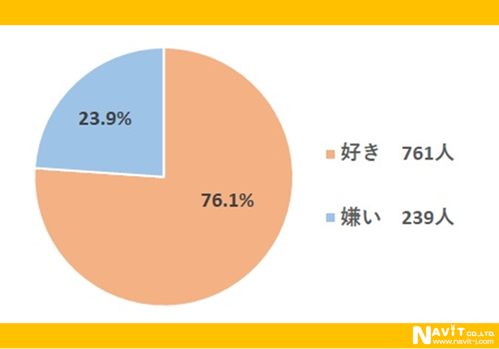月見ハンバーガーなどのお月見商品が「好き」な人の割合は、回答者の76.1%と約4分の3を占めました。