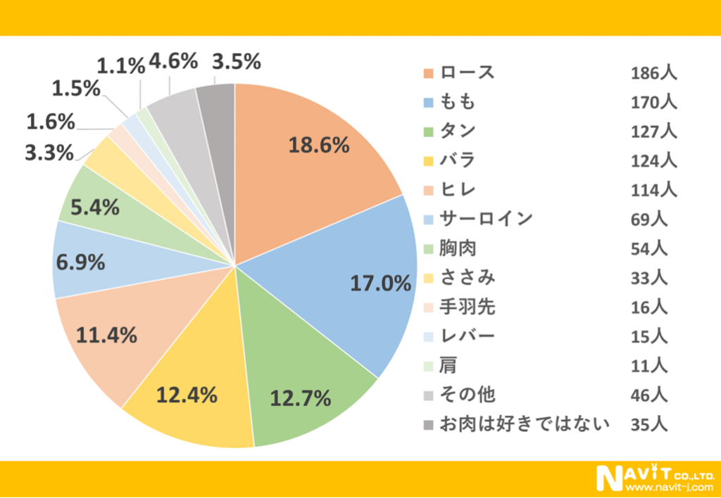 最も好きなお肉の部位はどこですか?(対象人数:1000人)