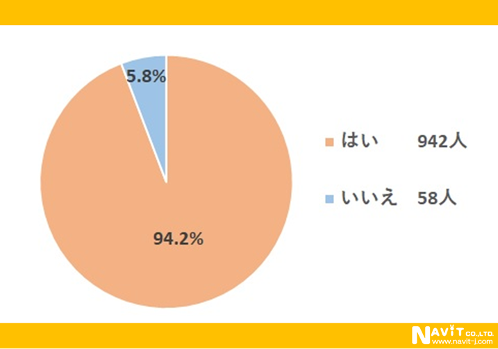 サラダが好きですか?との問いには94.2%が「はい」と回答。「いいえ」は5.8%にとどまっています。