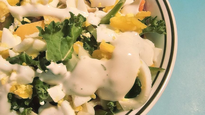 日本語のサラダを忠実に表しているのはポルトガル語の「salada」ですが、英語では「salad」。「sal」に「加える」という意味の「add」が加わって「salad」になったとも言われています。