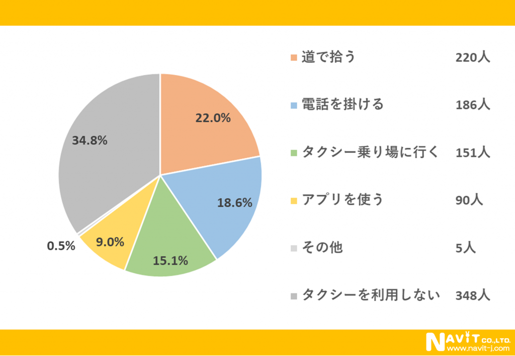 タクシー呼ぶ手段は、「道で拾う」が最多