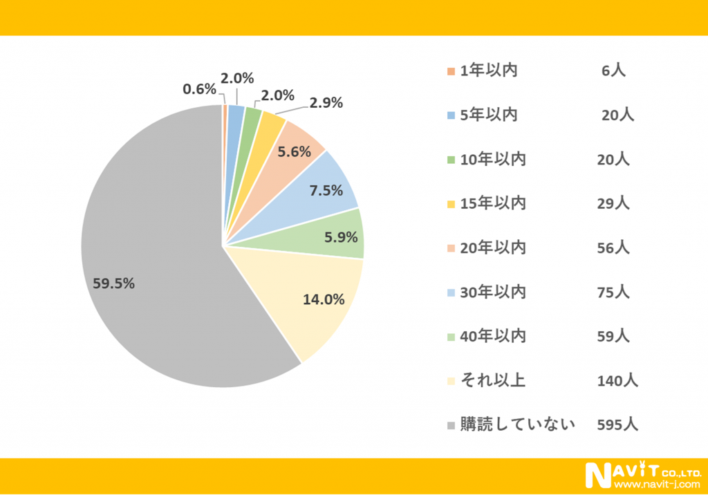 質問:どれくらいの期間、購読していますか?(対象:1,000名)