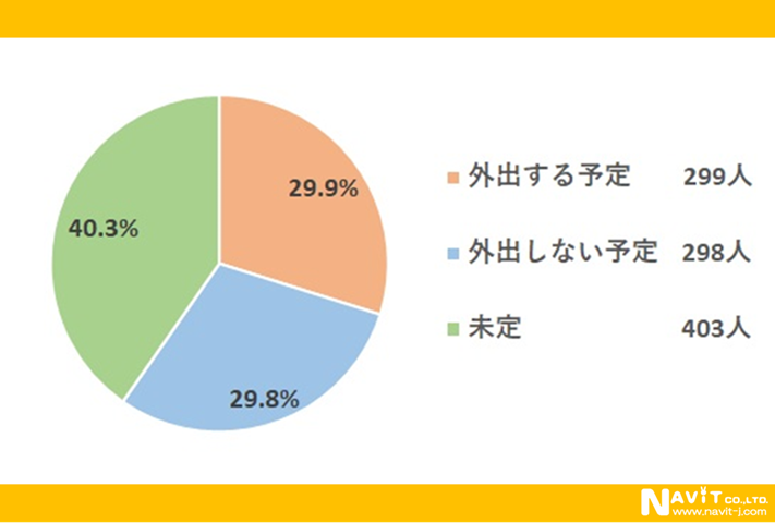 連休中に外出する予定は「未定」がトップで403人。「外出する予定」299人と「外出しない予定」298人はほぼ同数でした。