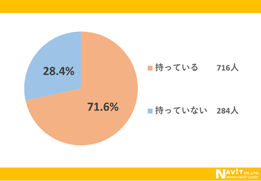 自家用車を持っているかの問いには71.6%が「はい」と回答。約7割の家庭が車を所有しているようです。