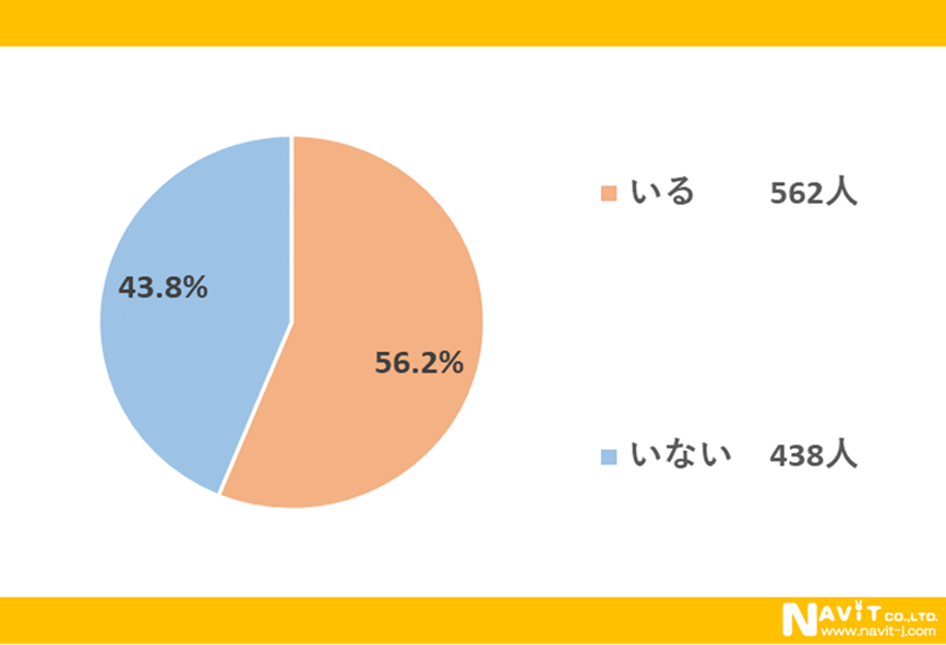 「お子さんはいますか?」という質問については、「いる」が56.2%、「いない」が43.8%という結果になりました。