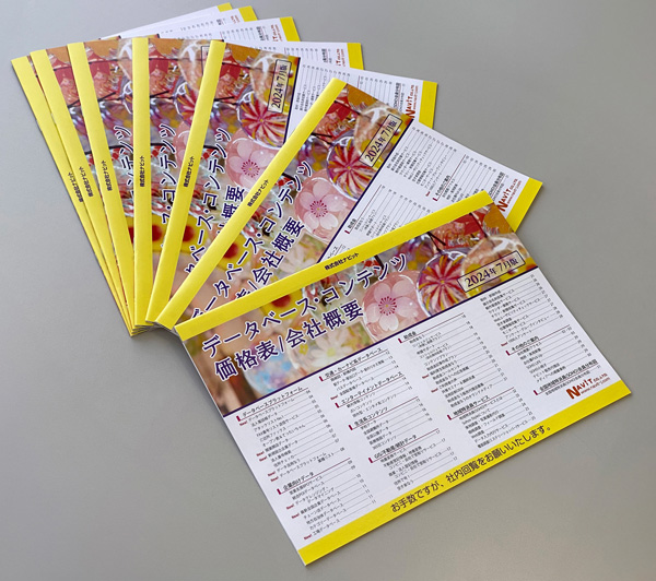 この度、2024年度7月版ナビットデータベース・コンテンツ価格表/会社概要が完成しましたのでお知らせいたします。