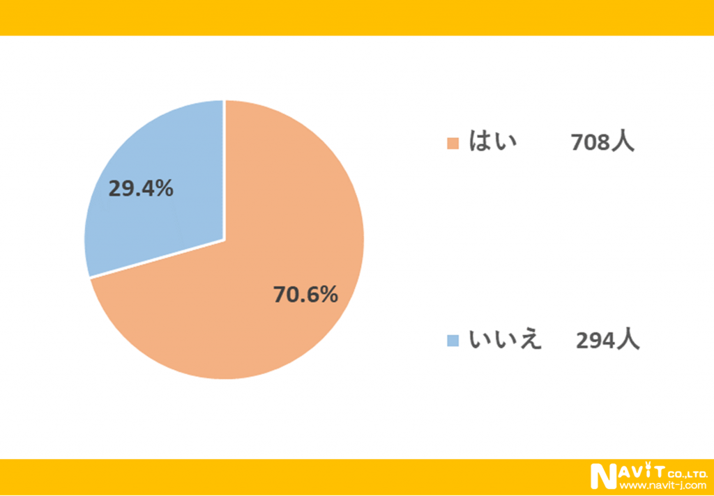 「コインランドリーを利用したことがありますか?」という質問については、「はい」が70.8%、「いいえ」が29.4%という結果になり、約7割の方がコインランドリーを利用したことがあると回答していました。