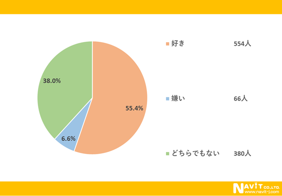 「ドライブは好きですか?」という質問については、「好き」が55.4%、「嫌い」が6.6%という結果になり、約半数の人はドライブが好きなことが分かりました。