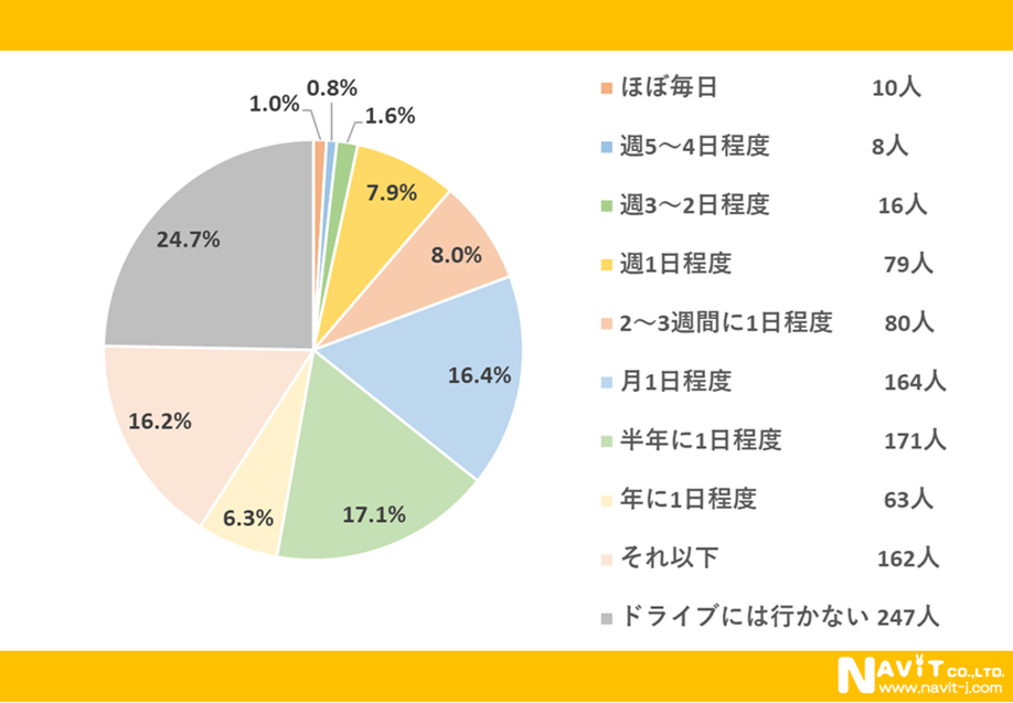 ドライブへ行く頻度は、「半年に1日程度」が最多