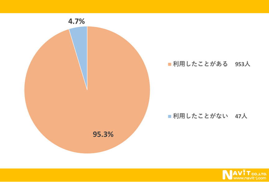 新幹線を利用したことがあるかというアンケートに対して「利用したことがある」が95.3%と多くの人が新幹線を利用したことがあるという結果になりました。