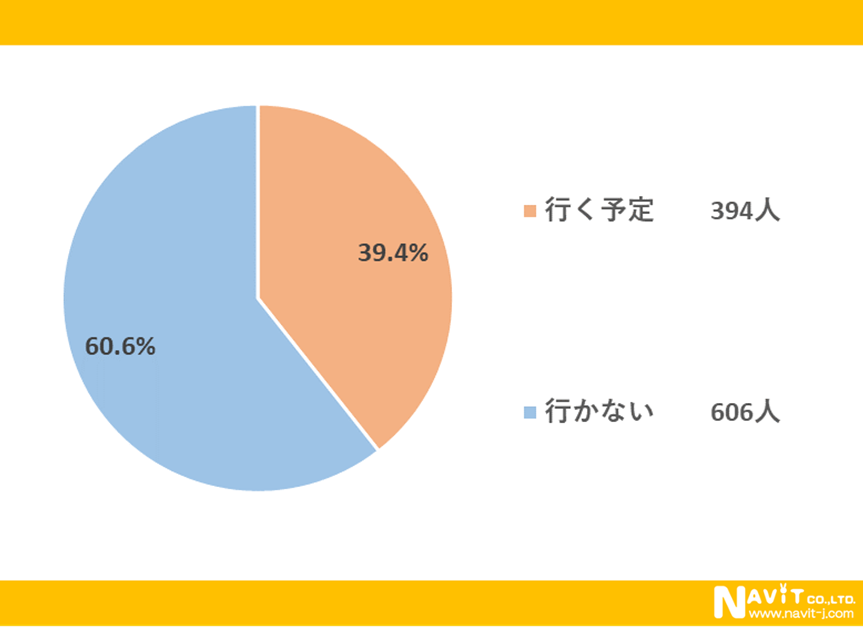 「今年の秋は紅葉を見に行きますか?」という質問については、「行く予定」が39.4%、「行かない」が60.6%という結果になり、意外にも6割の人は紅葉を見に行かないということが明らかになりました。