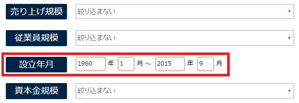 設立年月で絞り込む場合は、ご希望の期間を算用数字で入力してください。