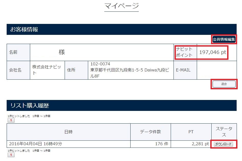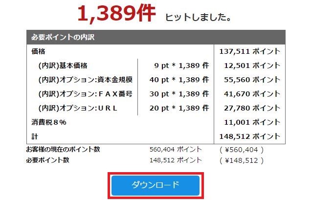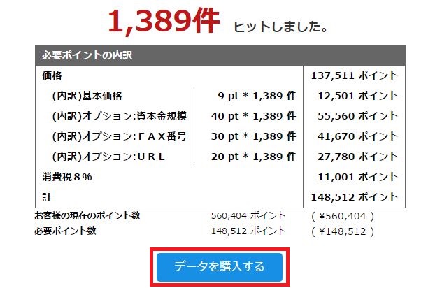 検索結果のデータを購入する場合は、ポイントが必要になります。