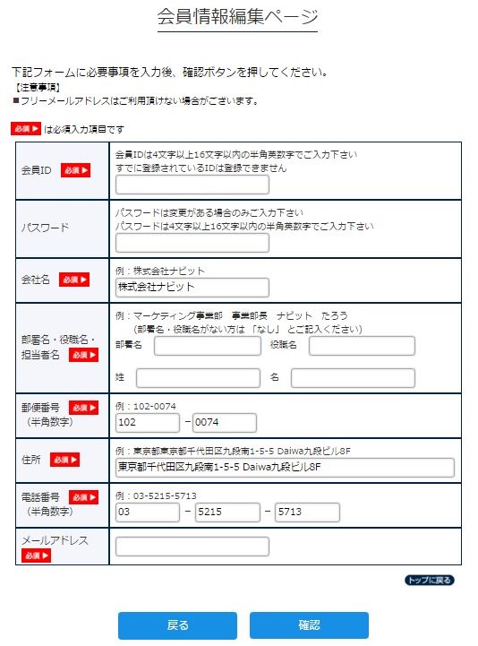 会員情報編集ボタンを押すと、会員情報を変更することができます。ログインIDとパスワードは、半角英数字4文字以上から16文字以内が設定できます。