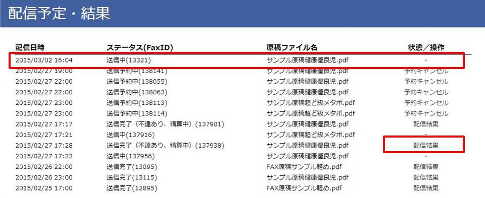 ■送信結果レポート(レンタルの場合)