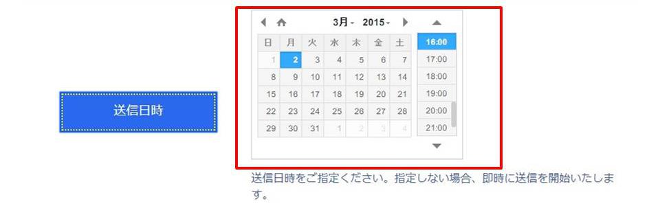 FAXを送信したい日にちと時間を選択します。一ヶ月先まで選択できます。
