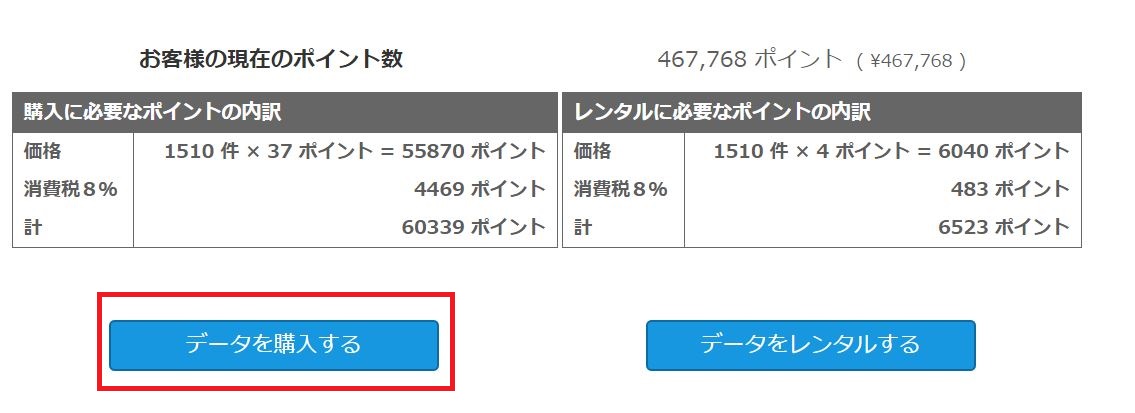 検索結果のデータを購入もしくは、レンタルする場合は、ポイントが必要になります。